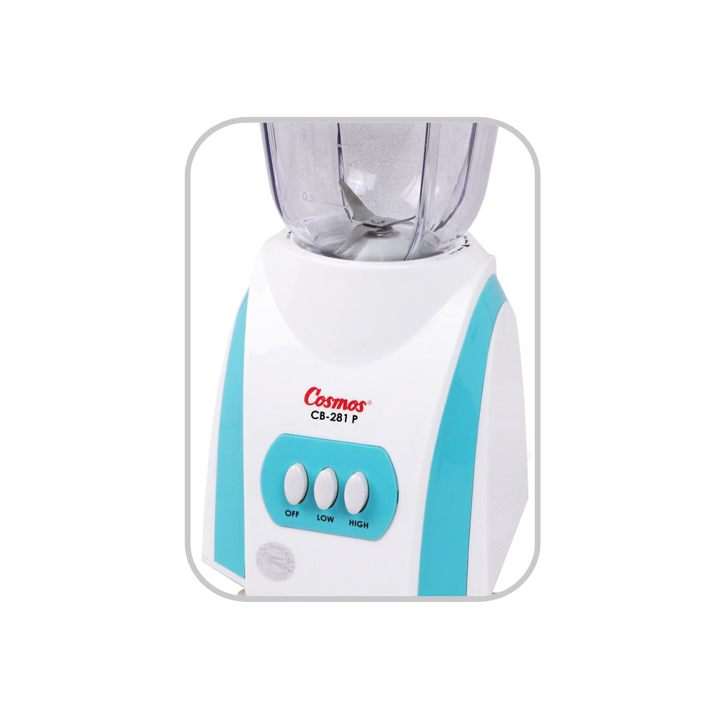Blender Cosmos dengan pisau stainless steel (stainless steel blade) lebih kuat & anti karat. Dilengkapi goblet plastik berkapasitas 2 Liter & dry mill (penggiling bumbu kering). Tidak perlu diragukan lagi kualitasnya, karena blender Cosmos memiliki thermostat overheat protection yaitu pelindung motor blender yang berfungsi memutuskan aliran listrik secara otomatis jika suhu motor telah mencapai batas yang ditentukan guna mencegah terbakarnya motor blender. Dengan safety lock system dimana motor tidak akan berfungsi jika pelumat tidak terpasang dengan baik dan benar sehingga mencegah terlepasnya goblet dan mata pisau dapat mencederai pengguna.