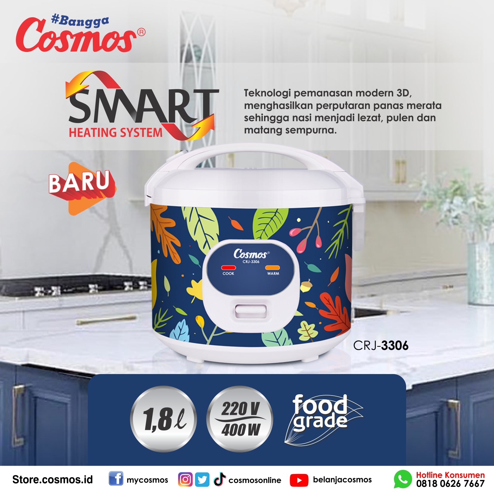 Cosmos Rice Cooker Anti Lengket CRJ-3306 -1.8L